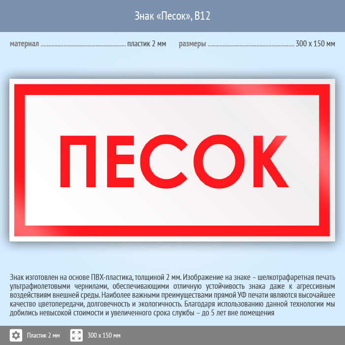 Знак «Песок», B12 (пластик, 300х150 мм) в Хотьково купить