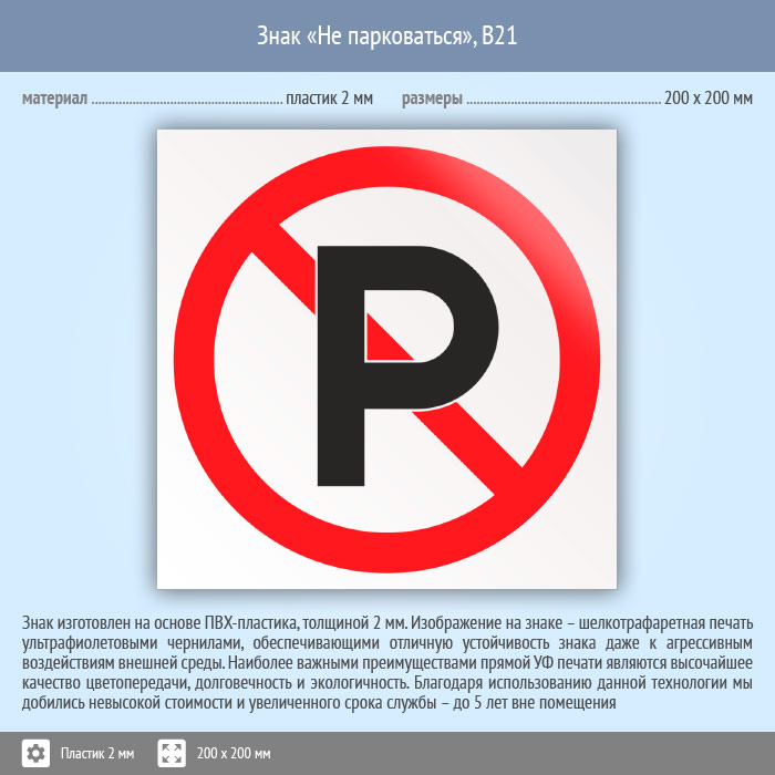 Знак «Не парковаться», B21 (пластик, 200х200 мм) в Хотьково купить