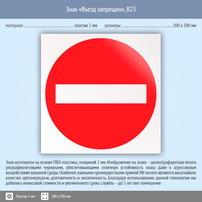 Знак «Въезд запрещен», B23 (пластик, 200х200 мм) в Хотьково купить