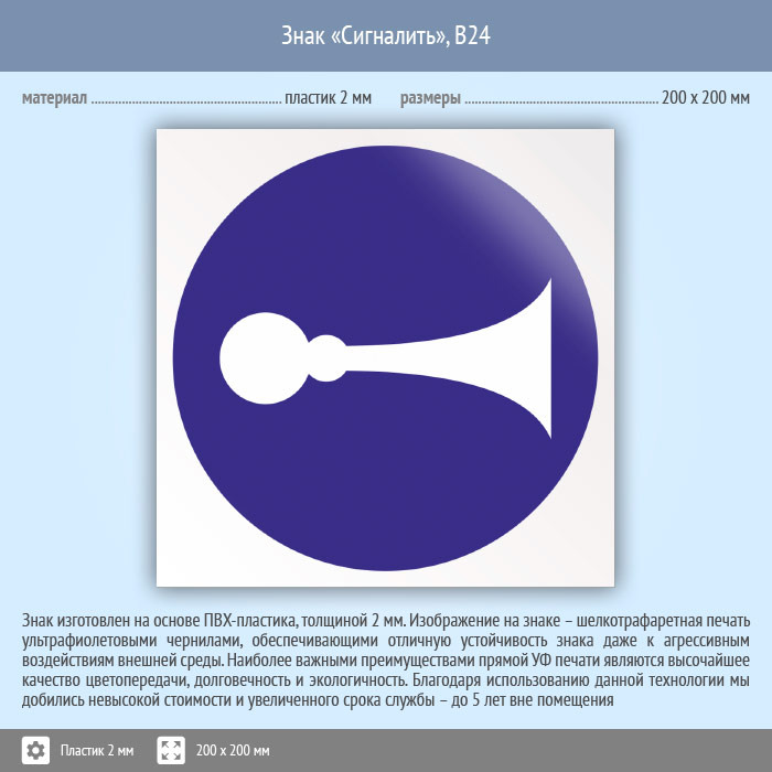 Знак «Сигналить», B24 (пластик, 200х200 мм) в Хотьково купить