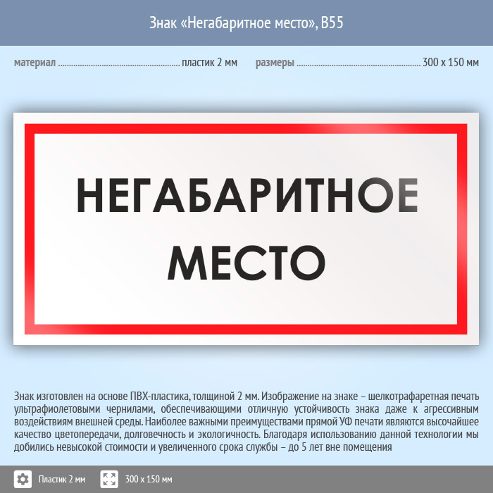 Знак «Негабаритное место», B55 (пластик, 300х150 мм) в Хотьково купить