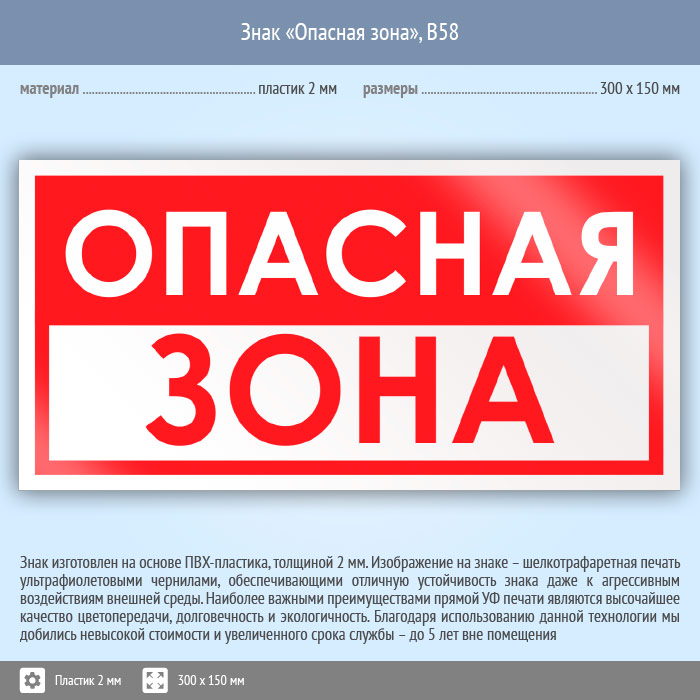 Знак «Опасная зона», B58 (пластик, 300х150 мм) в Хотьково купить