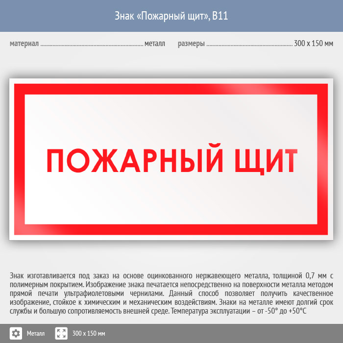 Знак «Пожарный щит», B11 (металл, 300х150 мм) в Хотьково купить