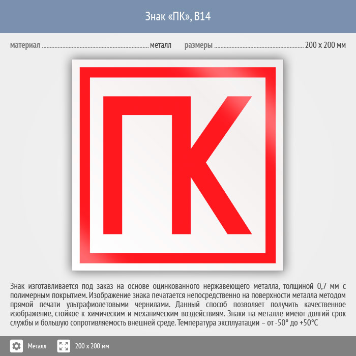 Знак «ПК», B14 (металл, 200х200 мм) в Хотьково купить