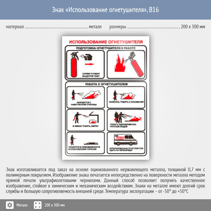 Знак «Использование огнетушителя», B16 (металл, 200х300 мм) в Хотьково купить