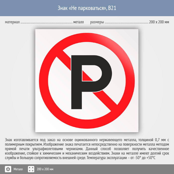 Знак «Не парковаться», B21 (металл, 200х200 мм) в Хотьково купить