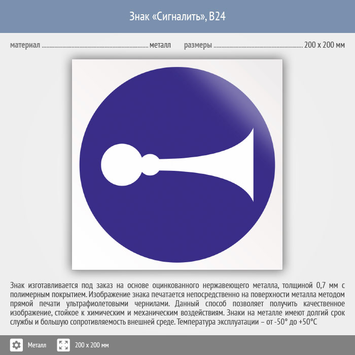 Знак «Сигналить», B24 (металл, 200х200 мм) в Хотьково купить