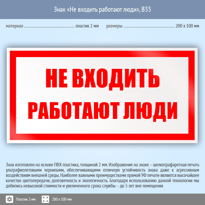 Знак «Не входить работают люди», B35 (пластик, 200х100 мм) в Хотьково купить