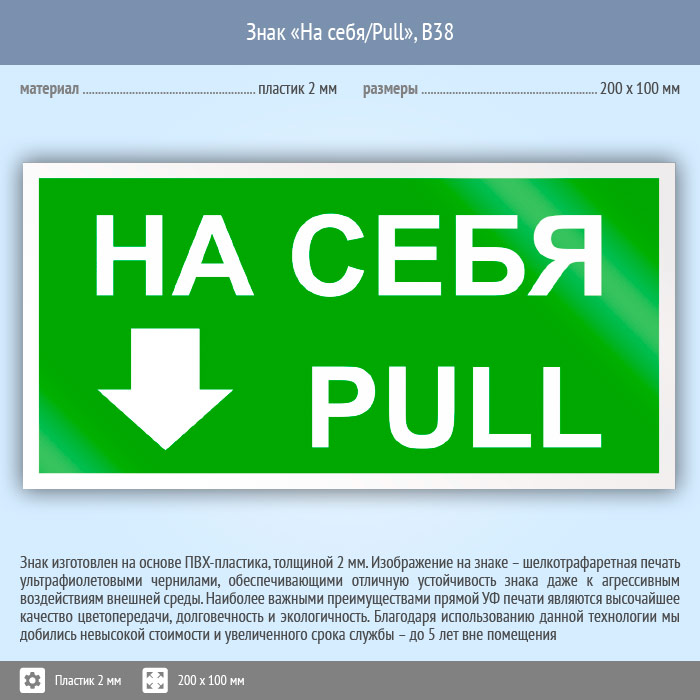 Знак «На себя/Pull», B38 (пластик, 200х100 мм) в Хотьково купить