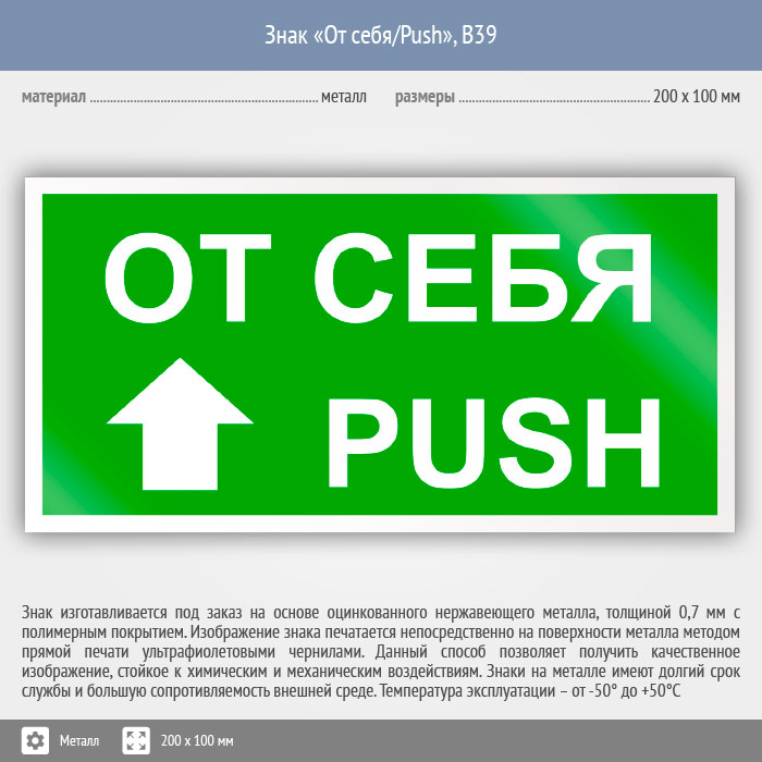 Знак «От себя/Push», B39 (металл, 200х100 мм) в Хотьково купить