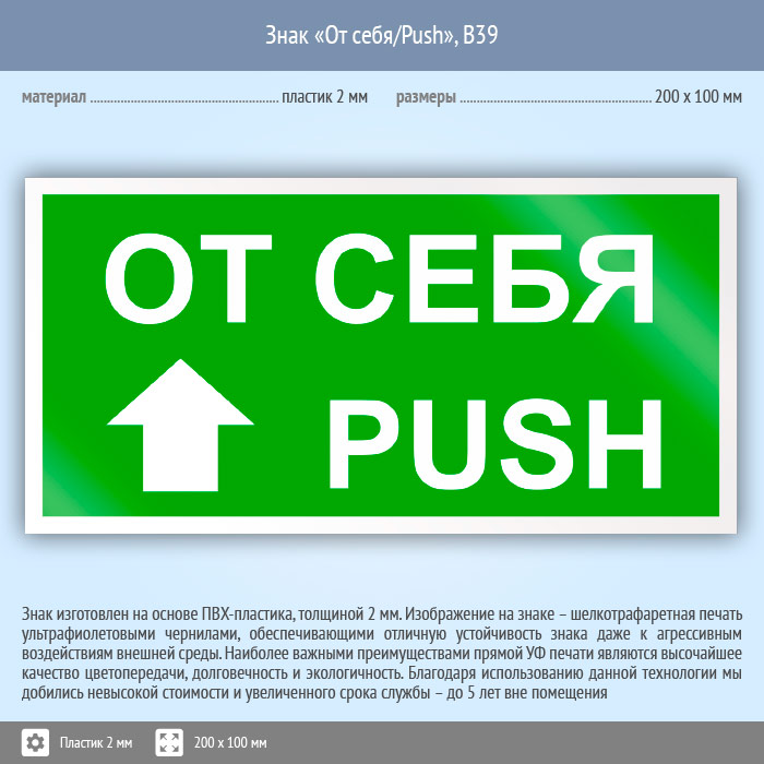 Знак «От себя/Push», B39 (пластик, 200х100 мм) в Хотьково купить