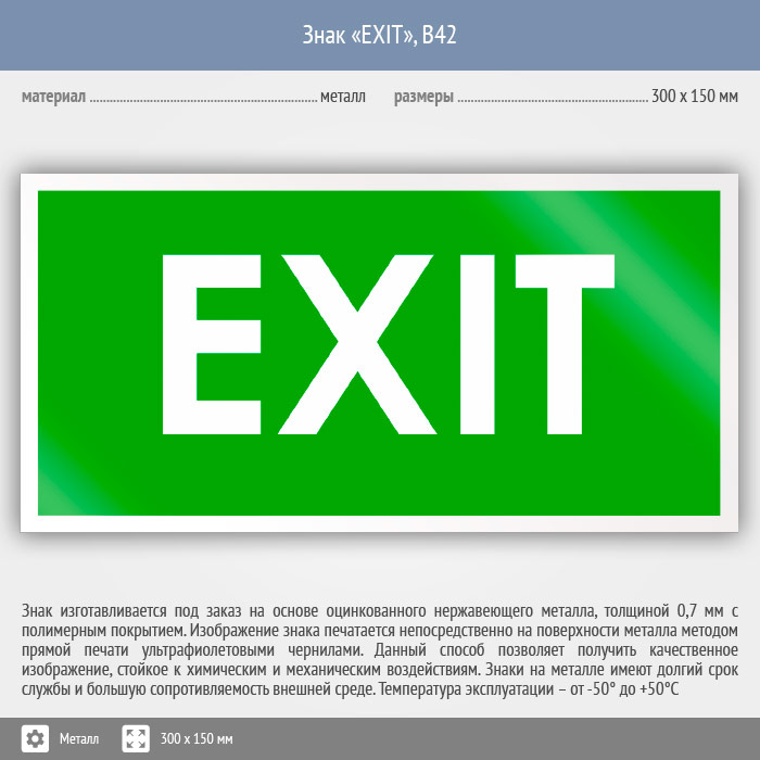 Знак «EXIT», B42 (металл, 300х150 мм) в Хотьково купить