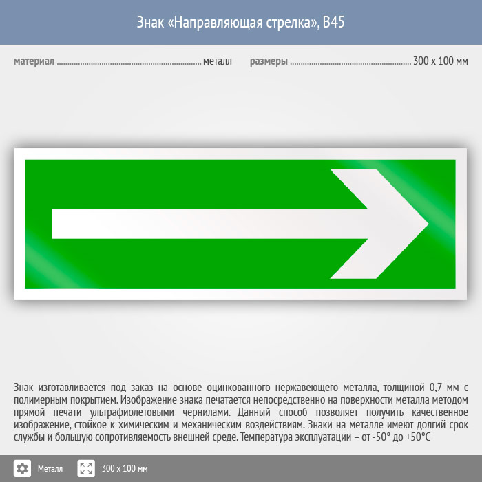 Знак «Направляющая стрелка», B45 (металл, 300х100 мм) в Хотьково купить