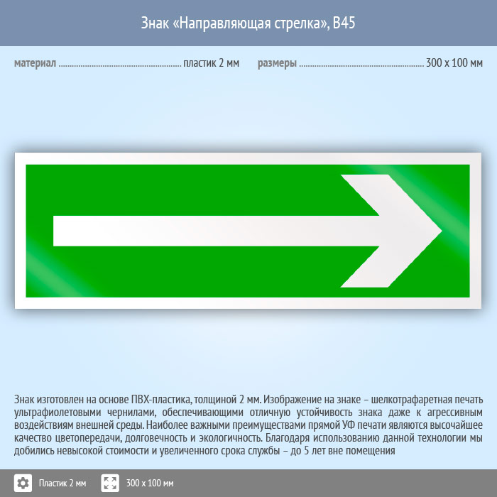 Знак «Направляющая стрелка», B45 (пластик, 300х100 мм) в Хотьково купить