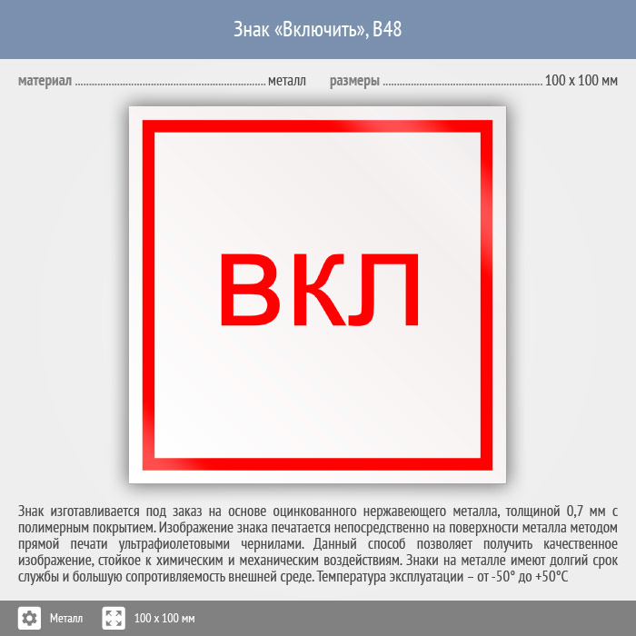 Знак «Включить», B48 (металл, 100х100 мм) в Хотьково купить