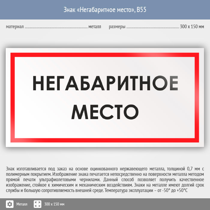 Знак «Негабаритное место», B55 (металл, 300х150 мм) в Хотьково купить