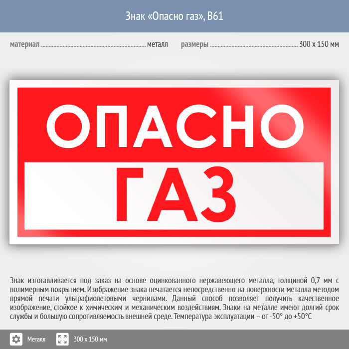 Знак «Опасно газ», B61 (металл, 300х150 мм) в Хотьково купить