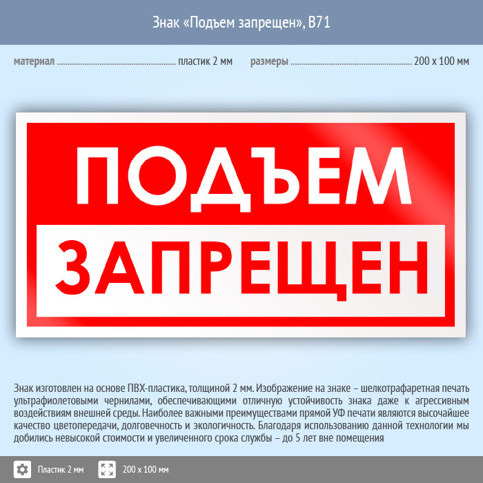 Знак «Подъем запрещен», B71 (пластик, 200х100 мм) в Хотьково купить