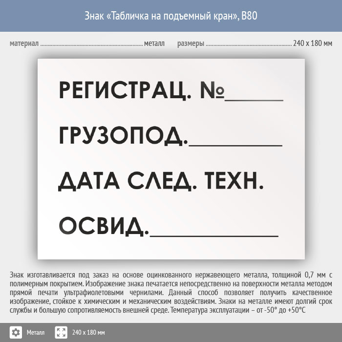 Знак «Табличка на подъемный кран», B80 (металл, 240х180 мм) в Хотьково купить