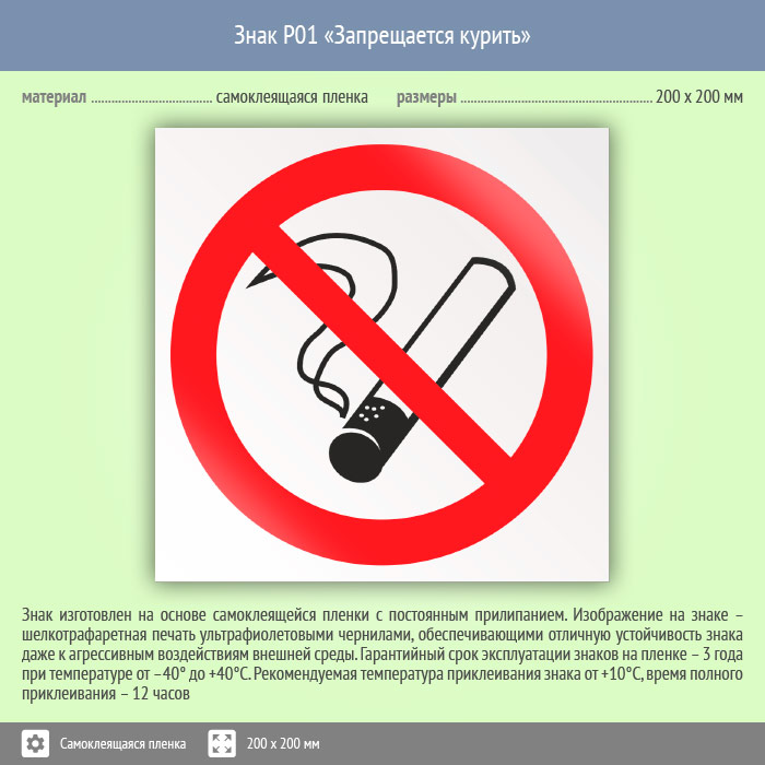 Знак P01 «Запрещается курить» (пленка, 200х200 мм) в Хотьково купить