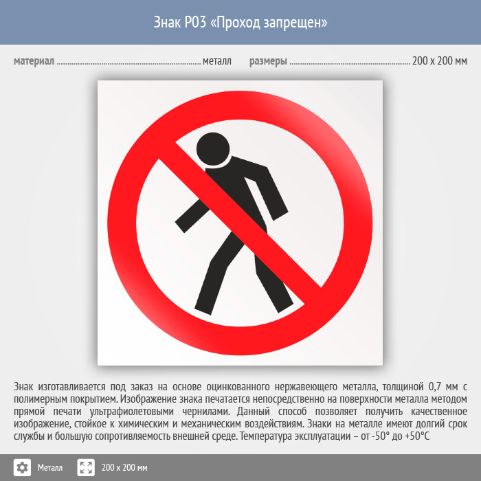Знак P03 «Проход запрещен» (металл, 200х200 мм) в Хотьково купить