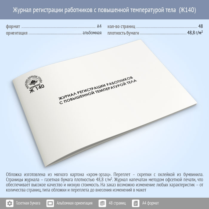Журнал регистрации работников с повышенной температурой тела (48 стр., Ж140) в Хотьково купить