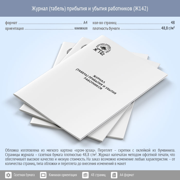 Журнал (табель) прибытия и убытия работников (48 стр., Ж142) в Хотьково купить