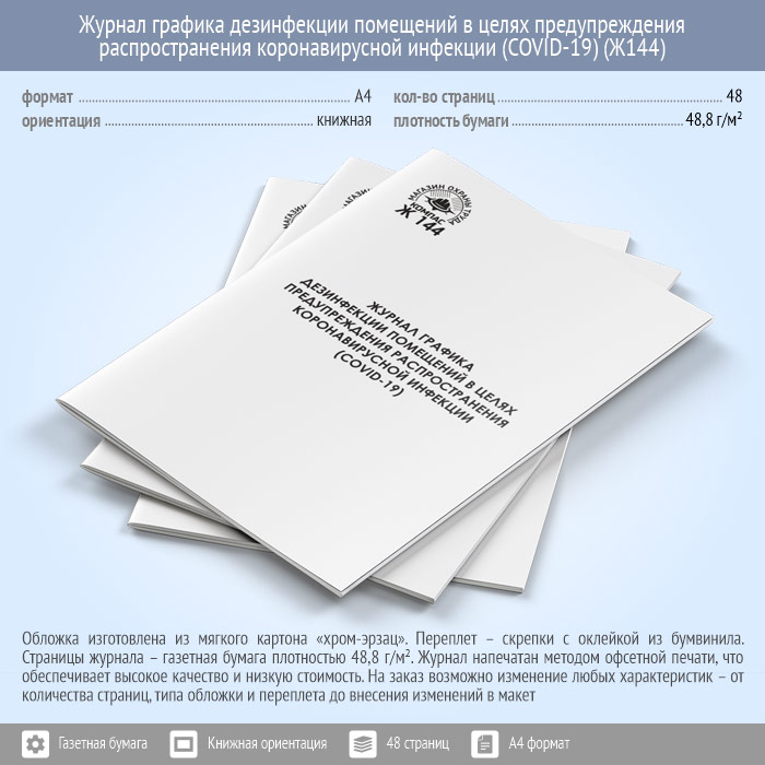 Журнал графика дезинфекции помещений в целях предупреждения распространения коронавирусной инфекции (COVID-19) (48 стр., Ж144) в Хотьково купить