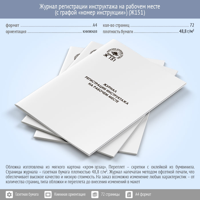 Журнал регистрации инструктажа на рабочем месте (с графой «номер инструкции») (72 стр., Ж151) в Хотьково купить