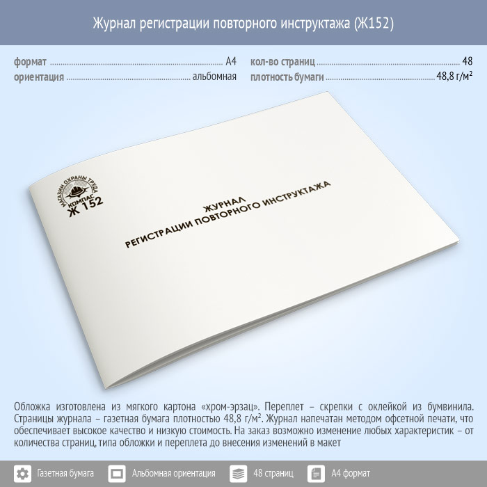 Журнал регистрации повторного инструктажа (48 стр., Ж152) в Хотьково купить