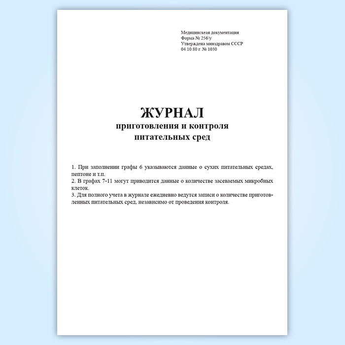Журнал приготовления и контроля питательных сред (форма 256/у) в Хотьково купить