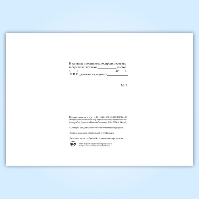 Вы получаете печатную продукцию прошнурованной и c местом для вашей печати в соответствии с действующими нормативными документами: