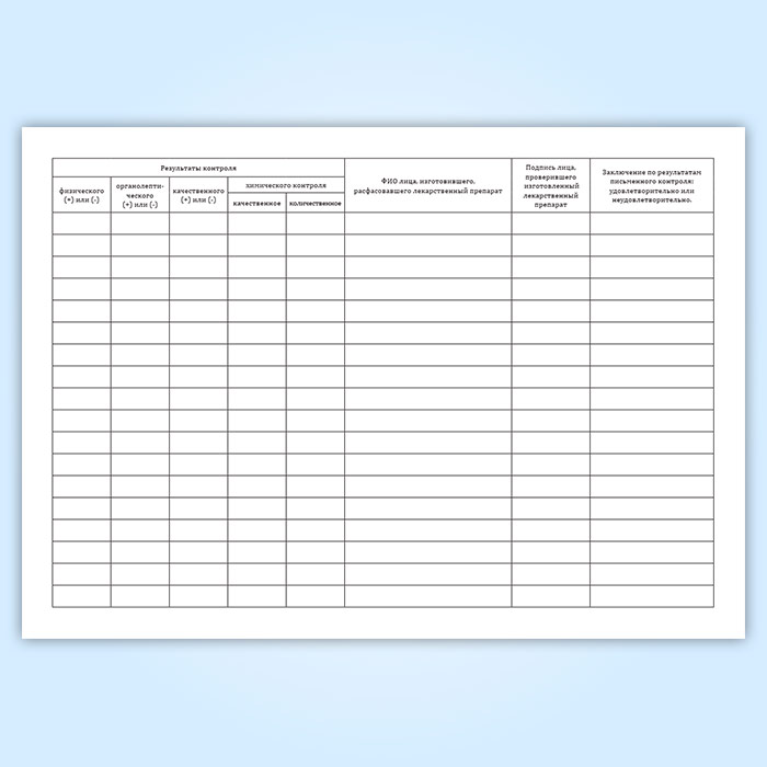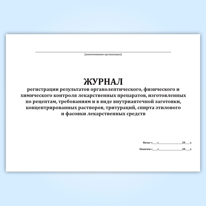 Журнал регистрации результатов органолептического, физического и химического контроля лекарственных препаратов, изготовленных по рецептам, требованиям и в виде внутриаптечной заготовки, концентрированных растворов, тритураций, спирта этилового и фасовки лекарственных средств в Хотьково купить