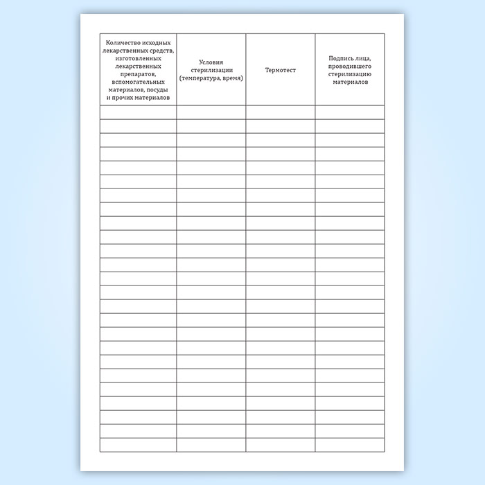 Журнал регистрации режима стерилизации исходных лекарственных средств, изготовленных лекарственных препаратов, вспомогательных материалов, посуды и прочих материалов в Хотьково купить