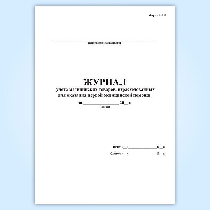 Журнал учета медицинских товаров, израсходованных для оказания первой медицинской помощи (форма А-2.15) в Хотьково купить
