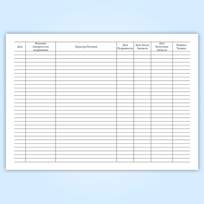 Журнал учета поломки аттракционов и игровых автоматов в Хотьково купить