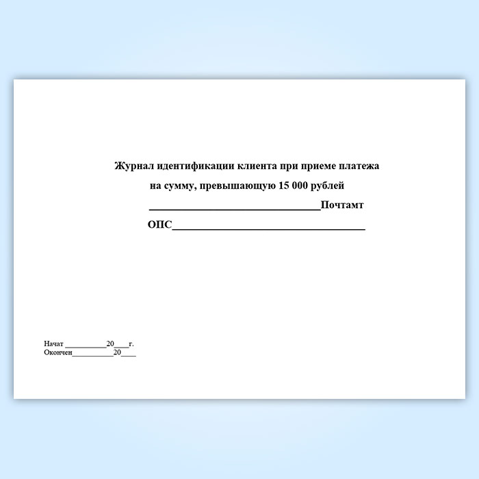Журнал идентификации клиента при приеме платежа на сумму, превышающую 15 000 рублей в Хотьково купить