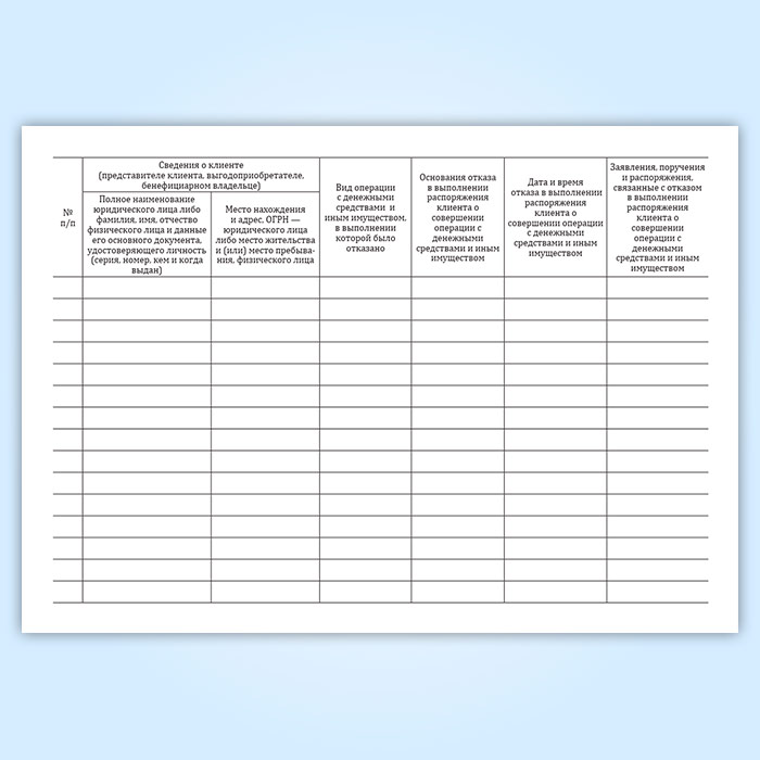 Журнал учета отказов в выполнении распоряжения клиентов о совершении операции с денежными средствами и иным имуществом в Хотьково купить