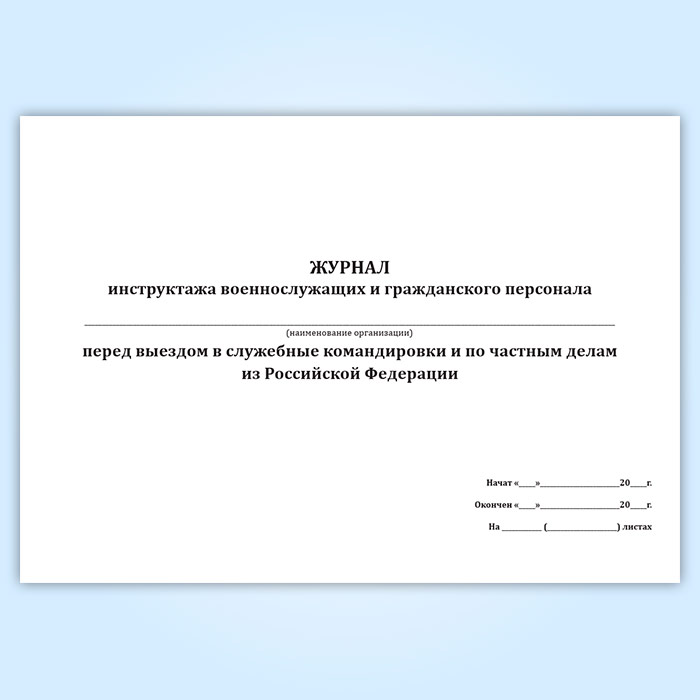 Журнал инструктажа военнослужащих и гражданского персонала перед выездом в служебные командировки и по частным делам из Российской Федерации в Хотьково купить