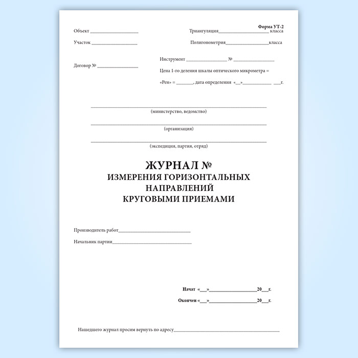 Журнал измерения горизонтальных направлений круговыми приемами (форма УТ-2) в Хотьково купить