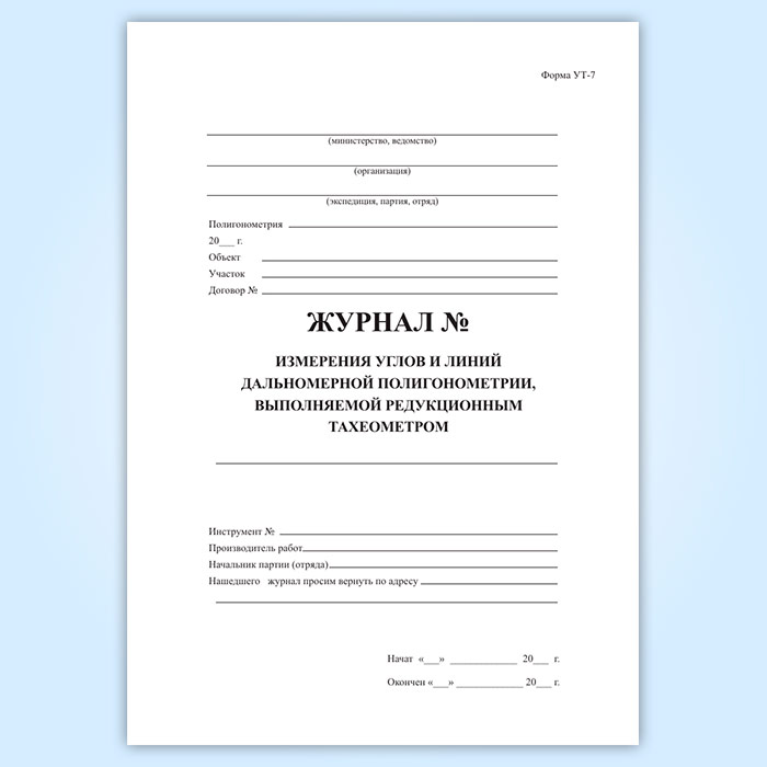 Журнал измерения углов и дальномерной полигонометрии, выполняемой редукционным тахеометром (форма УТ-7) в Хотьково купить