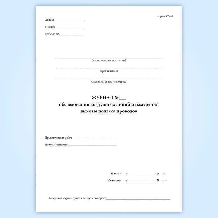 Журнал обследования воздушных линий и высоты подвеса проводов (форма УТ-40) в Хотьково купить