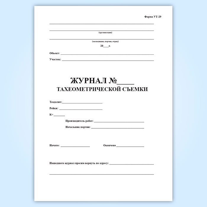 Журнал тахеометрической съемки (форма УТ-29) в Хотьково купить