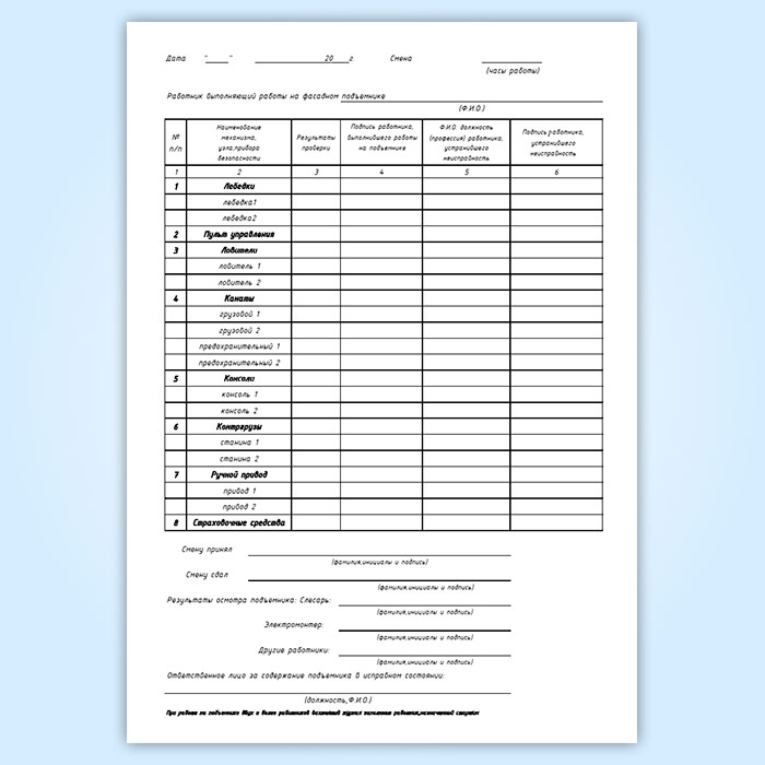 Вахтенный журнал фасадного двухподвесного подъемника в Хотьково купить