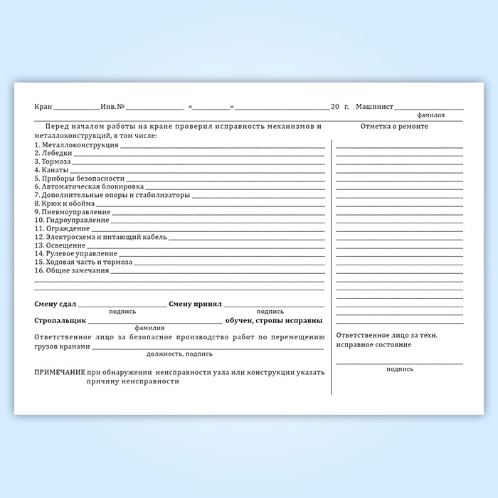 Вахтенный журнал г/п крана в Хотьково купить