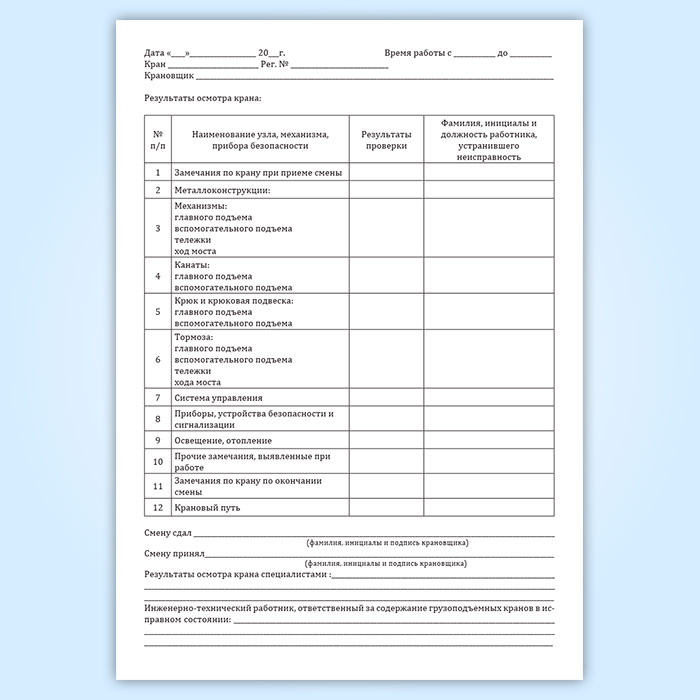 Вахтенный журнал машиниста мостового крана в Хотьково купить