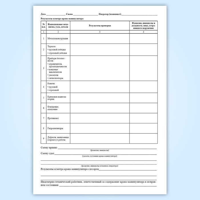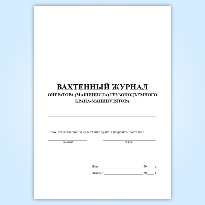 Вахтенный журнал оператора (машиниста) грузоподъемного крана-манипулятора в Хотьково купить
