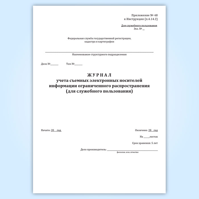 Журнал учета съемных электронных носителей информации ограниченного распространения (для служебного пользования) в Хотьково купить