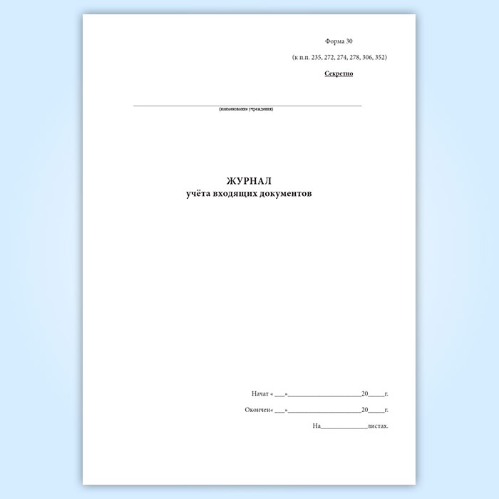 Журнал учета входящих документов (форма № 30) в Хотьково купить