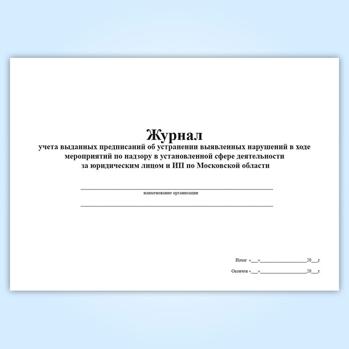 Журнал учета выданных предписаний об устранении выявленных нарушений в ходе мероприятий по надзору в установленной сфере деятельности за юридическим лицом и ИП по Московской области в Хотьково купить